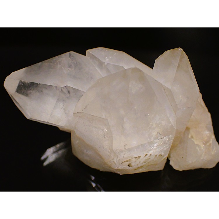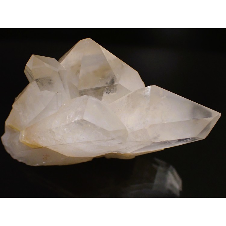 Striking, glassy, transparent, colourless prismatic crystals of quartz to 5 cm in length. The specimen sits perfectly for display and is very clean of damage. Ex. Roland Thomas collection.