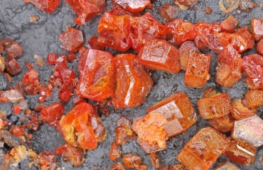 Two interesting facts make vanadinite especially memorable. First, despite its gem-like appearance, it can be toxic due to its lead content, so specimens should be handled carefully and never used in jewellery. Second, its fiery colour and mirror-like brilliance make it a favourite among mineral photographers – under light, the crystals almost seem to glow from within.