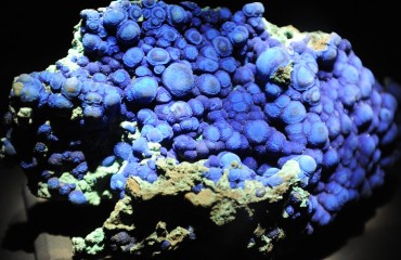 Some of the world’s most famous azurite localities include the legendary Tsumeb Mine in Namibia, known for its perfectly formed lustrous crystals; the Milpillas Mine in Sonora, Mexico, which produced a modern flood of deep blue specimens of extraordinary quality; and Bisbee and Morenci in Arizona, USA, both classic American sources. Other notable occurrences include Chessy-les-Mines in France – where the mineral was first described in modern times – the Burra Burra Mine in South Australia and the ancient copper mines in Lavrion, Greece. In the UK, large crystals are uncommon. Instead, azurite is found as thin layers of small crystals on other minerals from the copper mines in Cornwall and Alderley Edge in Cheshire.
